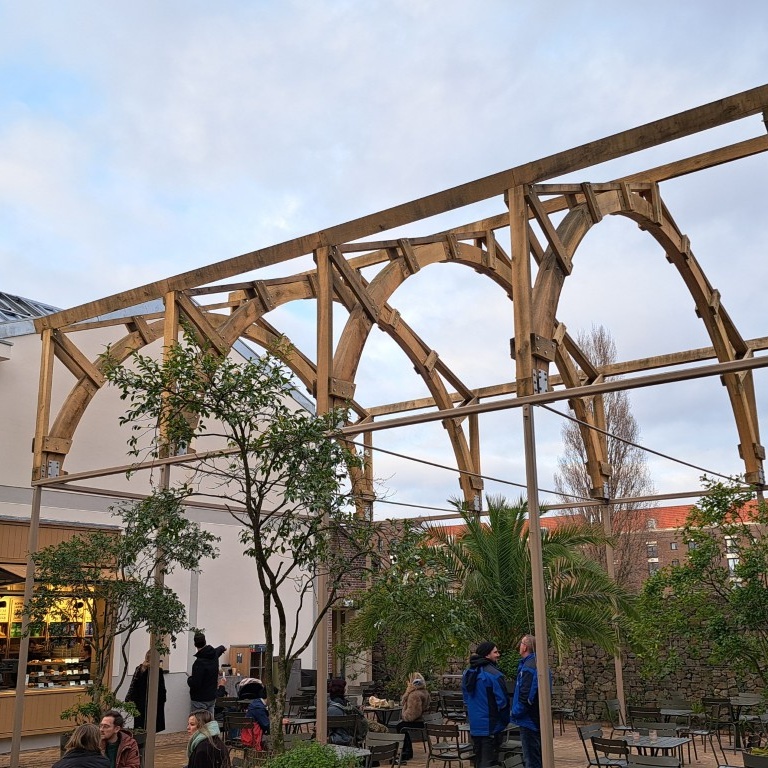 Daarnaast hebben we een bakkerij met uitgifte-deel gecreëerd en hebben we de eikenhouten spanten voor de overkapping bij het terras nagemaakt, waarbij er vanwege de constructieve veiligheid voor is gekozen om deze net iets robuuster uit te voeren dan de originelen. In de nieuwe ruimtes hebben we verschillende wanden geïsoleerd met vlas en is er gekozen voor een duurzame afwerking van kalkstuc.
