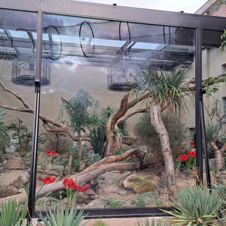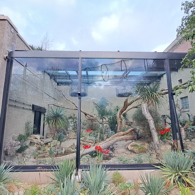 Het nieuwe binnenverblijf voor de dieren is voorzien van hele grote, anti-spiegelende glasoppvervlakken, waardoor de dieren en hun gedrag goed zijn te zien voor bezoekers. In deze ruimte is een subtropisch klimaat nagebootst. We hebben daarvoor een WKO, nivolairs (plafondverhitters), een nevelsysteem voor de beplanting en een drinkwatersysteem voor de dieren aangebracht.