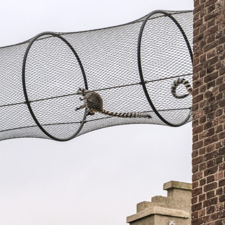 De luchtbruggen waarmee de verschillende verblijven zijn verbonden geven de dieren letterlijk en figuurlijk de ruimte en bieden hen een gevarieerde, uitdagende omgeving. Al met al een ontzettend gaaf project waar we heel trots op zijn!